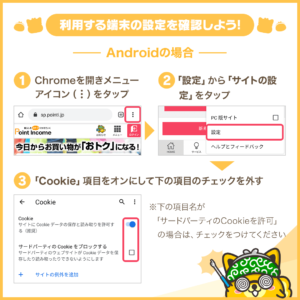 迷惑メール対策で受信できない場合は@pointi.jpを受信できるように設定しておきましょう。