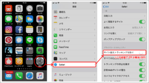設定→Safari→サイト超えトラッキングを防ぐをOFF
