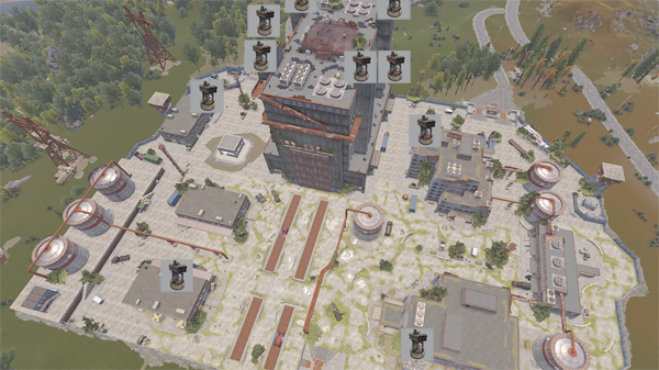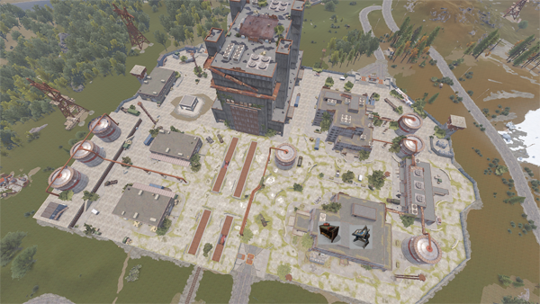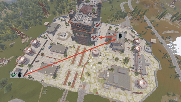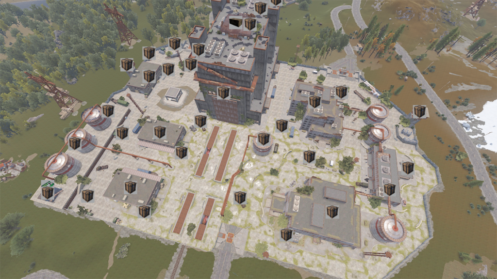 戦車が巡回しPvPの激戦区ですので十分な装備を用意しましょう。キーカードパズルではHAZMATスーツを着ていても放射線に汚染されるメインビルディングに侵入するため、十分な量の水を用意しましょう。水差し(青いタンク)が大量の水を運べるため便利です。RADピルがあるなら持っていきましょう。