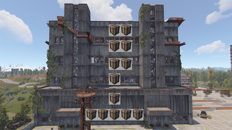 安全を最優先するなら一目散に屋上を目指すのが良いでしょう。屋上の敵NPCを処理して安全を確保してから箱を探しましょう。屋上のヘリコプターの周辺に3つのエリートクレートと、他にも多くの箱があります。