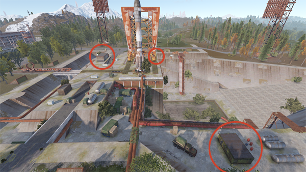 ロケットの近くの塔には最大4つの箱が沸きます。ロケット周辺の地下部分に箱があります。