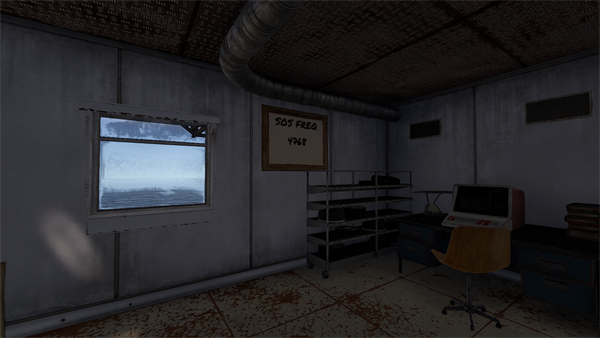 6階(最上階)の↓の画像の扉から入る部屋の壁に、ラージオイルリグのロックドクレート(通称15分箱)がハッキングされた時にポケベル(RF Pager)に通知されるコードが書いてあります。このコードをポケベル(RF Pager)にセットしておくと、誰かがラージオイルリグの15分箱にアクセスした時に通知が来ます。