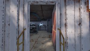 近くにもうひとつボタンがある部屋があり、こちらは側面のヒューズボックスにヒューズを入れることでボタンを押してドアを開くことができます。中には最大2つの箱とドラム缶があります。