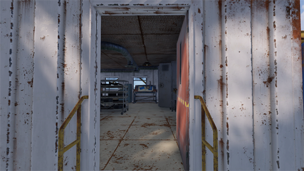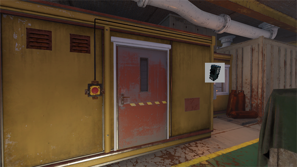 最上階の白い小屋にレッドキーカードドアがあります。そのままキーカードで開くことができます。中にはたくさんの箱、エリートクレート(Elite Tier Crate)とロックドクレート(通称15分箱)があります。15分箱はハッキングをスタートしてから15分後に開くことができる箱です。戦闘の準備が良ければタイマーをスタートさせましょう。