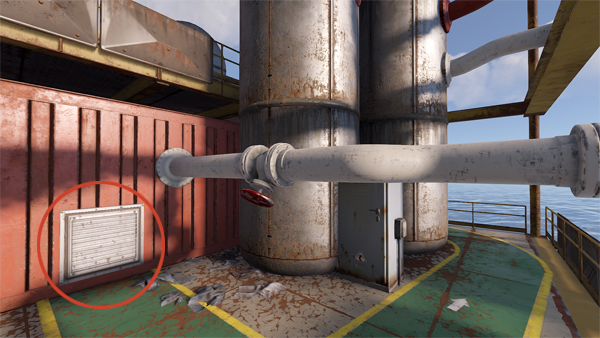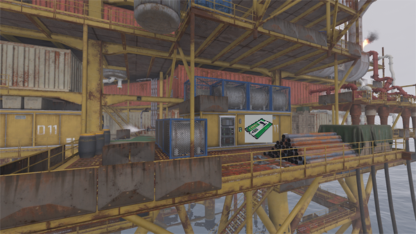 ラージオイルリグ(Large Oil Rig)のキーカードパズル攻略から木箱の隠し場所、通気口へ入ることで見つけることができる隠し場所までの詳細攻略です。