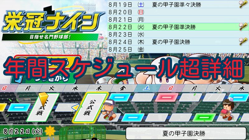 パワプロ栄冠ナインモードの詳細な年間スケジュールです。