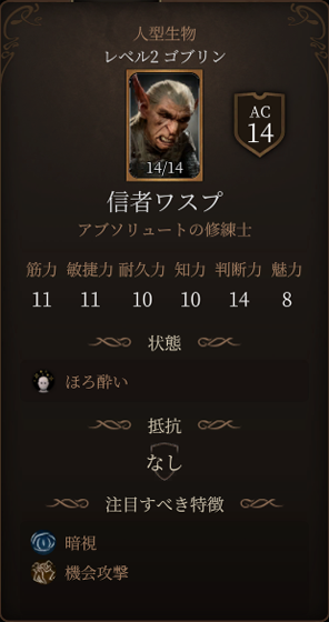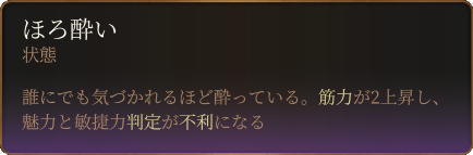 近くの宝箱を漁るために倒してしまいましょう。ほろ酔いで筋力が上がっていますが、敏捷力セーヴの魔法が当たりやすくなっています。