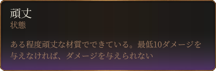 荒廃した村側からジャンプで来れる裏道ルートです。知覚難易度17と高いので罠を発見できず、頑丈&完全耐性もちと破壊も面倒です。発見できれば怪光線で簡単に壊せるのですが。