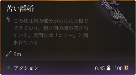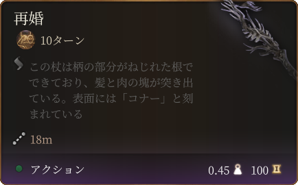 杖をへし折ると当然ながらそこでクエスト終了です。ワンドを渡すとメイリーナとコナーが今後再び登場します。ワンドを渡さなかった場合杖の名前が「再婚」に変わります。コナーを召喚して使役することができます。