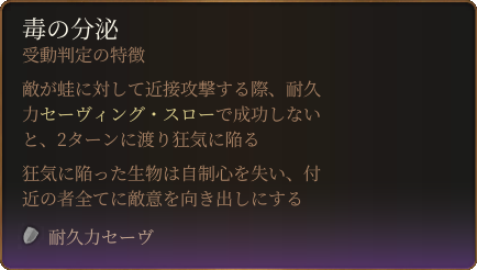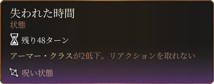 50ターンの間アーマー・クラスが2低下しリアクションを取れなくなります。