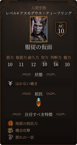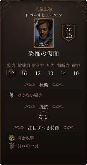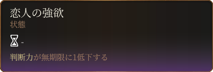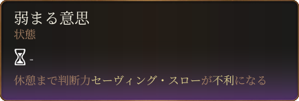 大休憩まで判断力セーヴィング・スローが不利になります。