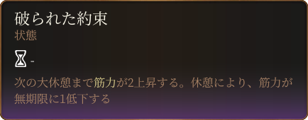大休憩まで筋力が2上昇しますが、その後無期限に1低下します。