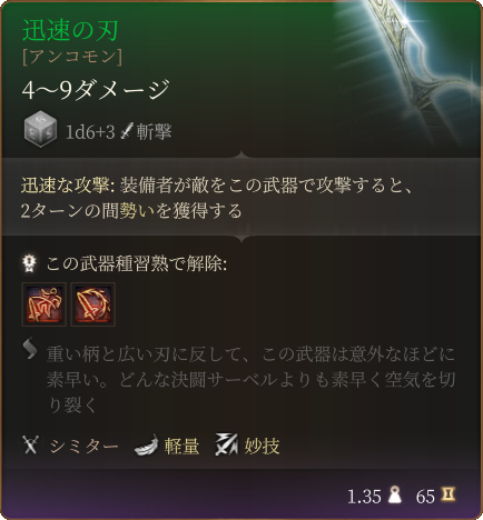 この武器で攻撃すると移動速度が上がるシミターです。