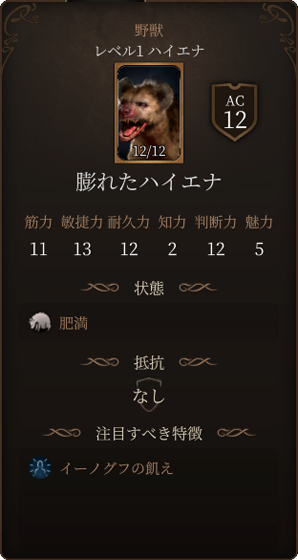 [近接攻撃]難易度12(有利)→判定に成功すると膨れたハイエナを倒し、ノールの新生児が誕生せずに戦闘