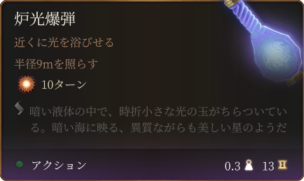 調べて難易度12の自動自然判定に成功すると錬金術素材の夜光葉が手に入ります。[自然]の高いキャラクターに「導き」をかけて調べると良いでしょう。炉光爆弾の材料になります。