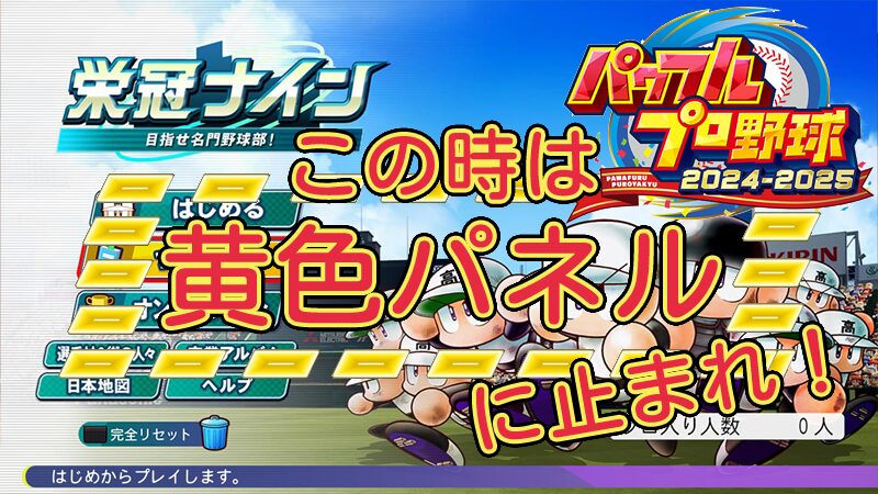 パワフルプロ野球2024-2025の栄冠ナインモードの黄色パネル(黄色マス)に止まった方が取得経験値が多くなりやすい状況の紹介です。その理由や黄色パネル(黄色マス)で増加する経験値の詳細に関しても説明しています。