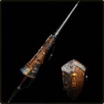 もし作成可能であればホープランスIIIよりこちらのほうが攻撃力が高いので使うと良いでしょう。ガード性能Lv2が付いています。油涌き谷では火属性はイマイチですが。