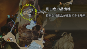 低確率で入手できるアイテムは本当に低確率ですので、とりあえず2、3周回ってみるぐらいにすると良いと思います。別のマップに行って戻ってくれば採取ポイントが復活します。隔ての砂原のエリア14できれいな化石を集めれば、脚防具生産に必要な暦年の大リュウヌ玉も手に入ります。