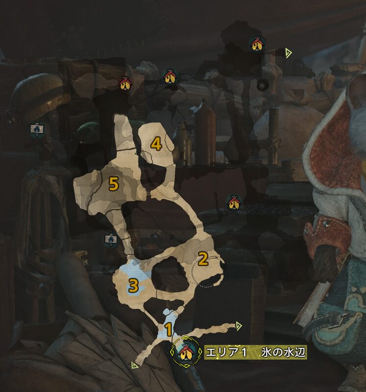 エリア1氷の水辺は、エリア2・3に行きやすい簡易キャンプ地ですが、ベースキャンプで十分かもしれません。