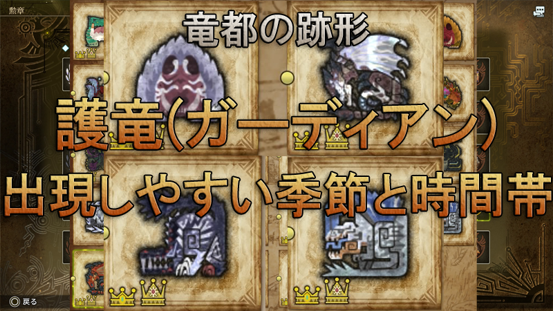 護竜(ガーディアン)が唯一出現する竜都の跡形での護竜が出現しやすい季節と時間帯を調べてみました。金冠探しで護竜の金冠を探す時に役に立ちます。