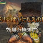 | こんがり肉 | 体力の上限が最大まで上昇し、 体力とスタミナを回復する食料。 体力の上限は一定時間で元に戻る。 | 30分 | 45分 |