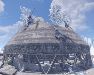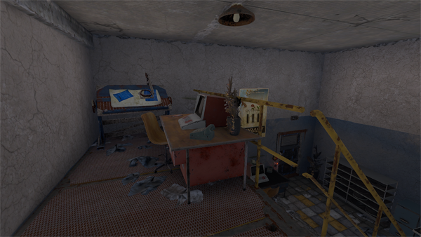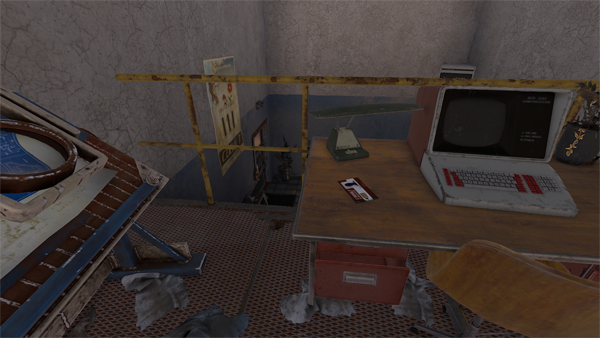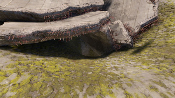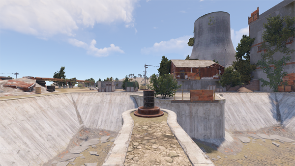 上の画像の壊れた冷却塔の中はHAZMATスーツを着ていても放射能汚染されてしまう高放射線地帯です。中に入る場合はRADピルや回復薬、水などのRAD対策をしていきましょう。