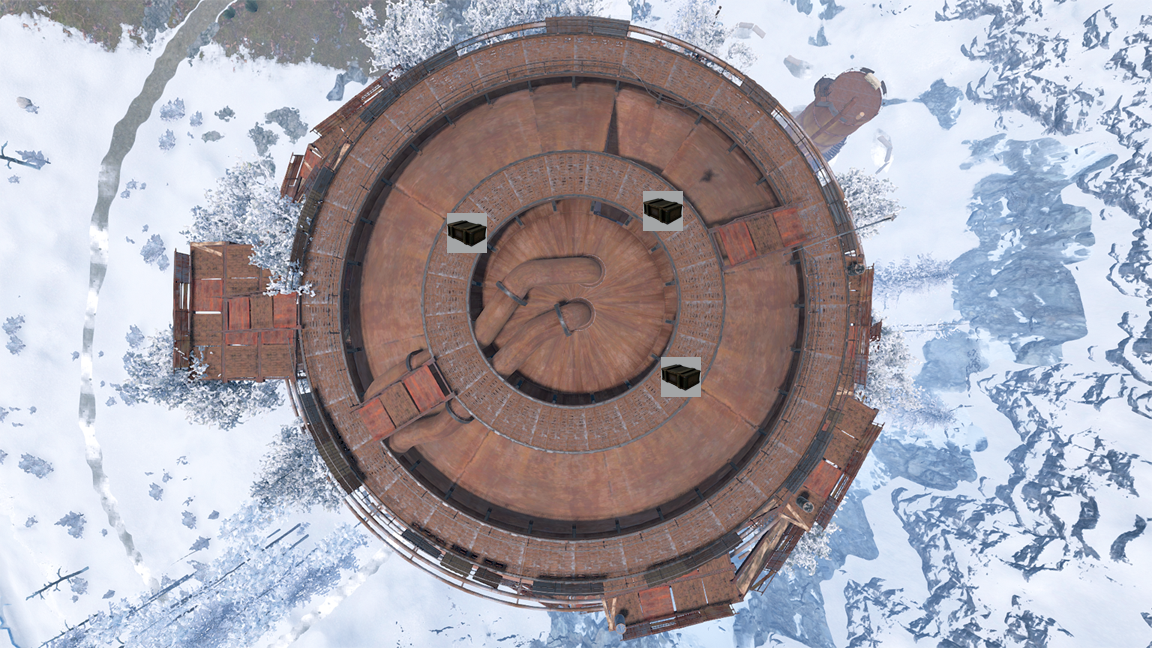 ドームの屋上には最大3つの武器箱が湧きます。ここがドームのメインです。また輸送ヘリコプターがハッキングクレートを落とす場所もドームの屋上です。