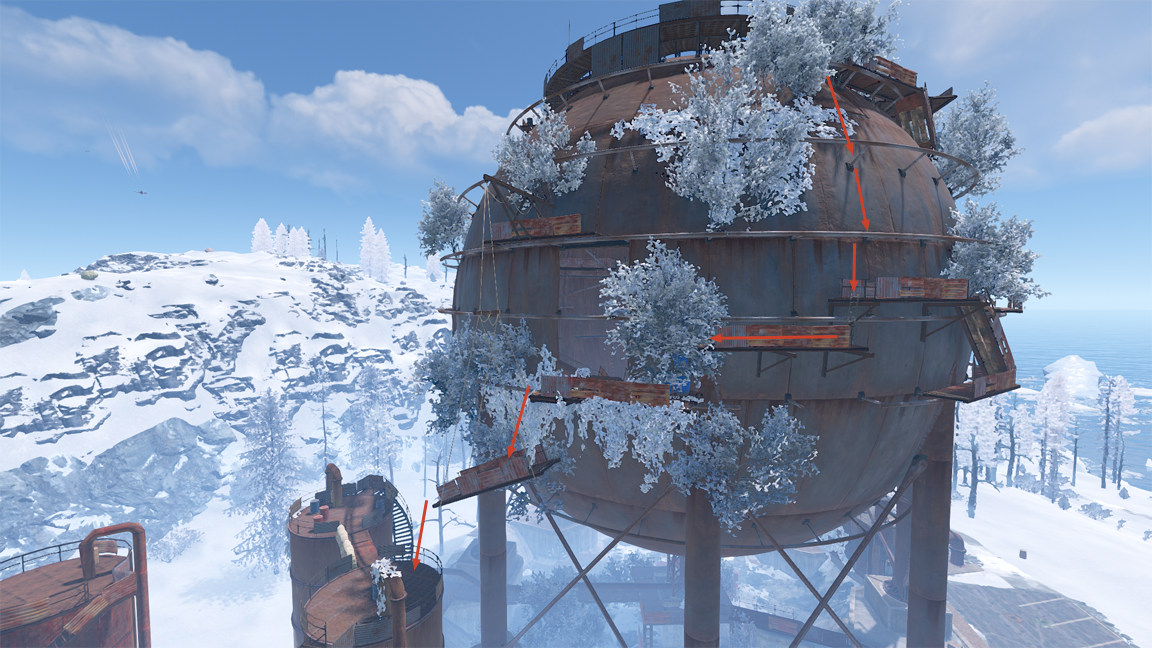 ドームの屋上に3箇所のディーゼル燃料の湧きポイントがあり、最大2つのディーゼル燃料が湧きます。