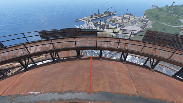 ドーム外側の通路まで落ちてきたら右へ進めば、タンクの上へと飛び移れる場所まで来れます。