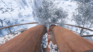 一気に地上まで降りるショートカットルートは、以下の画像にあるように2つのパイプ間を滑り落ちていくルートです。