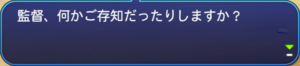 しかしこの良くないウワサはマネージャーから「何かご存知だったりしますか?」の問に「いいえ」と答えることで1回目なら回避することが可能です。なお、「はい」と答えると選手の能力が下がるなどの様々なペナルティが発生します。