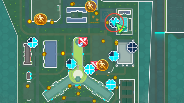 目標カードトークンは、校舎の中の「風紀委員 盆並 忠正」と「新聞部員 亀谷 真美子」を行き来するか、中学校東側の「アイドル同好会メンバー 推支 芽育人」と「水泳部員 御余毛 大也」を行き来するのが良いでしょう。