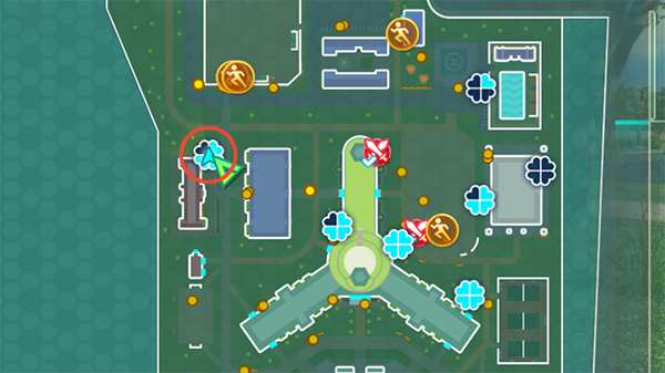 校舎の中かスカイクラフト発着場にマップ移動し、目的地へ向かいましょう。