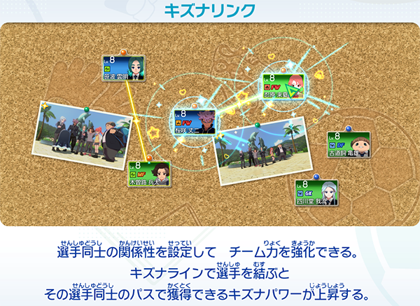 必殺技によるシュートチェインもパス扱いになるため、シュートチェインでもキズナパワーが貯まります。