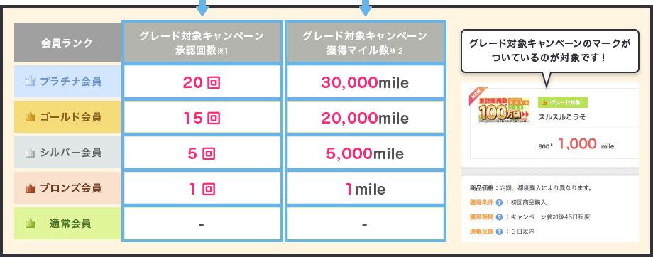 | ポイント有効期限 | 最後にmileを獲得してから半年 |