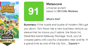 ニュース 「あつまれ どうぶつの森」メタスコア91点!海外でも超高評価! 「あつまれ どうぶつの森」が海外レビューサイトで91点スタート!海外レビューサイト「metacritic」での任天堂スイッチソフト「あつまれ どうぶつの森」のレビューが解禁され、9... 2020.03.18 ニュース